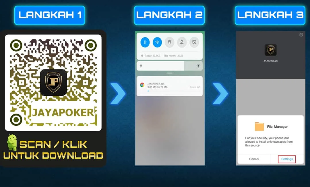 Untuk bermain melalui handphone android sangat mudah, anda hanya perlu download File APK ANDROID (Size 6.75 MB) yang telah tersedia.